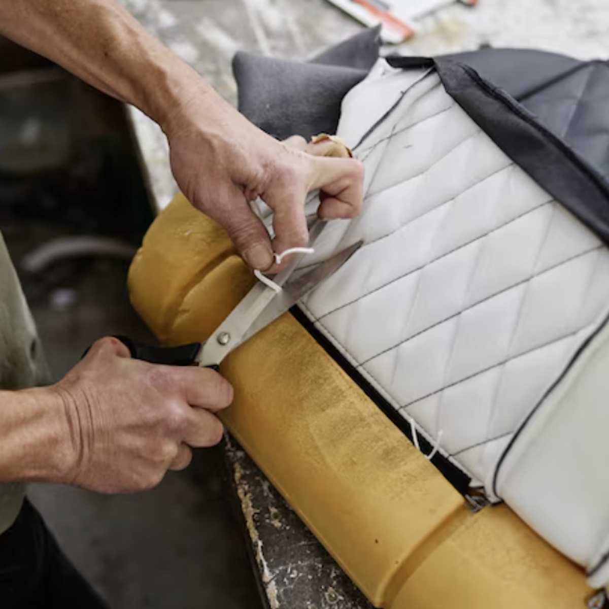 • Stiknaad los: Door gebruik kan een siernaad knappen, of tijdens de productie van de bekleding kan het al fout gegaan zijn. Enkel met een kromme naald en garen kan het losse gedeelte al vastgezet worden.